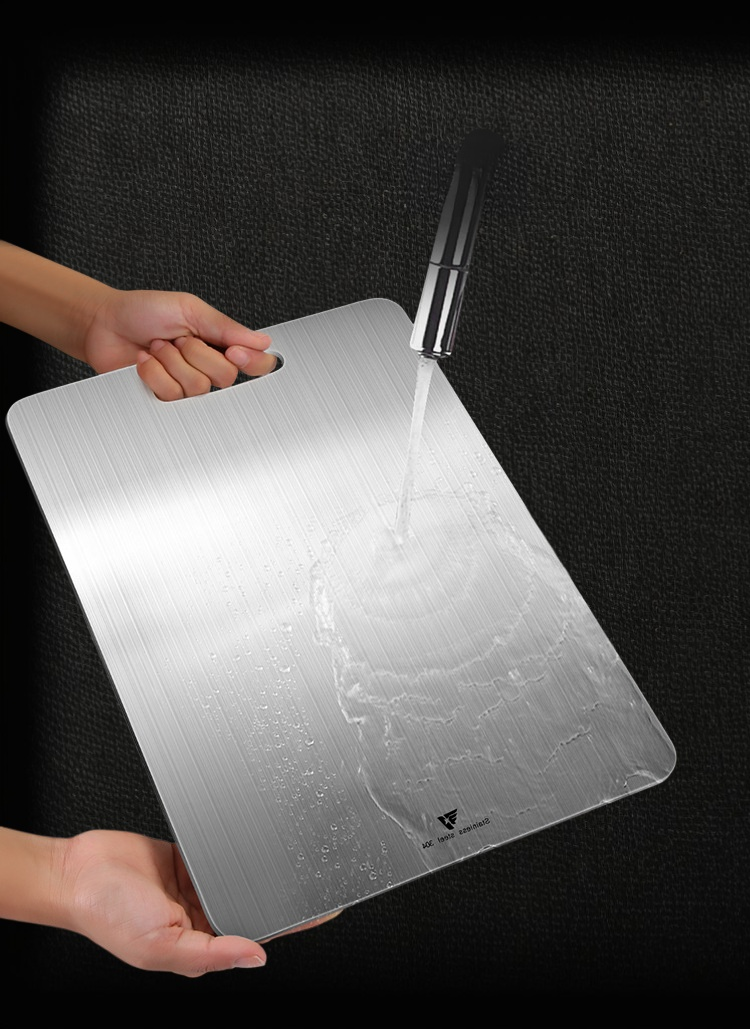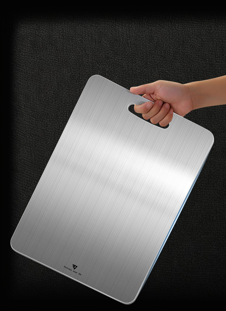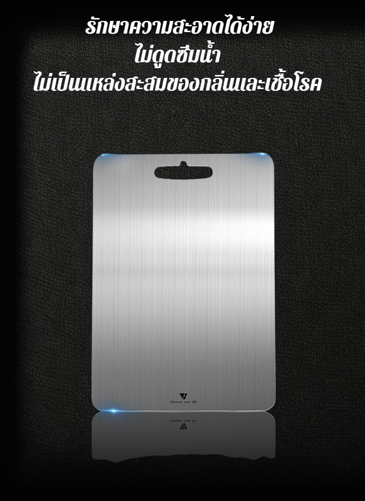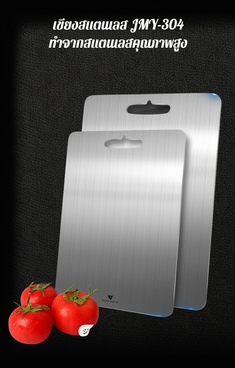 เขียงสแตนเลสหนา ทนทานต่อการใช้งาน ไม่เป็นสนิม ทำความสะอาดง่าย เหมาะสำหรับครัวทุกประเภท ช่วยให้การเตรียมอาหารปลอดภัยและสะดวก